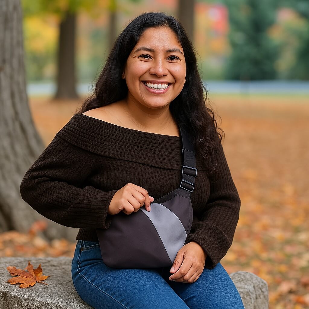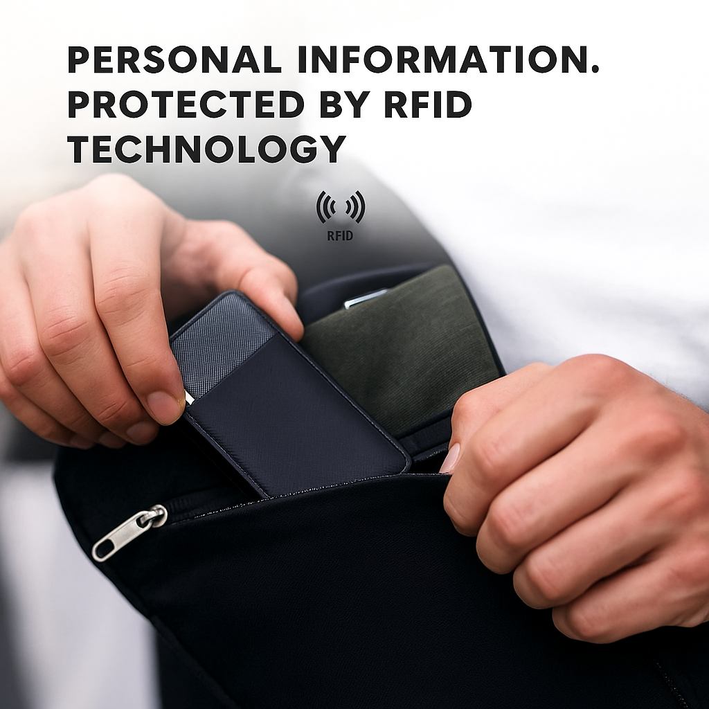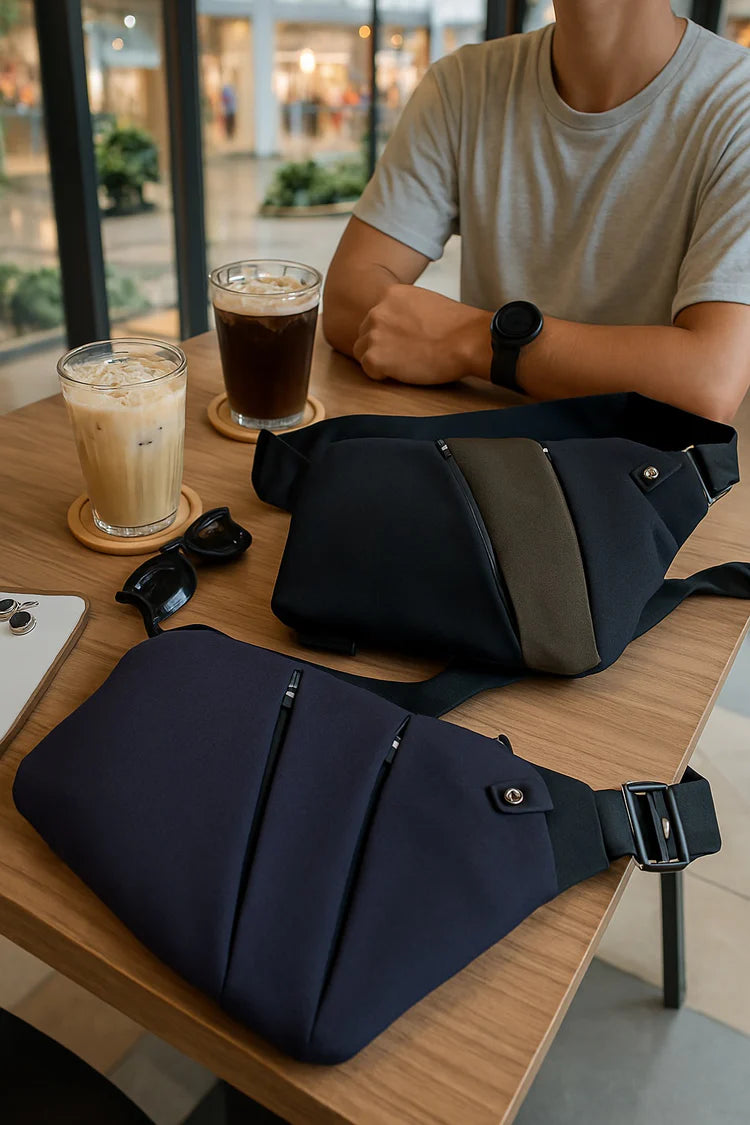 The bag is made from premium Oxford fabric (cut-resistant and water-resistant). It includes RFID-blocking technology and hidden zippers for extra security.