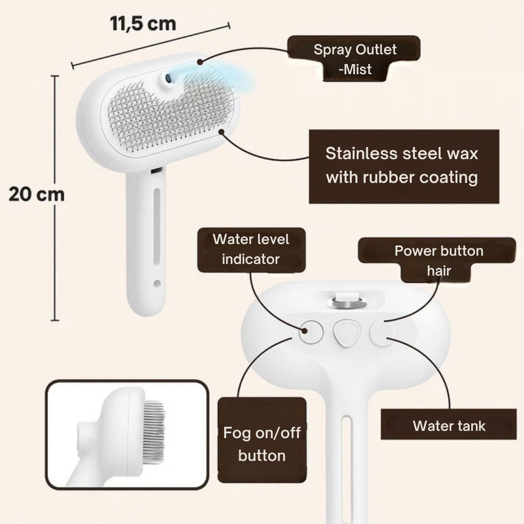 Unlike regular brushes, FurMist™ releases a soft hydrating mist while grooming. It refreshes your pet’s coat, reduces static, and adds a natural shine — turning each brushing session into a spa-like experience.